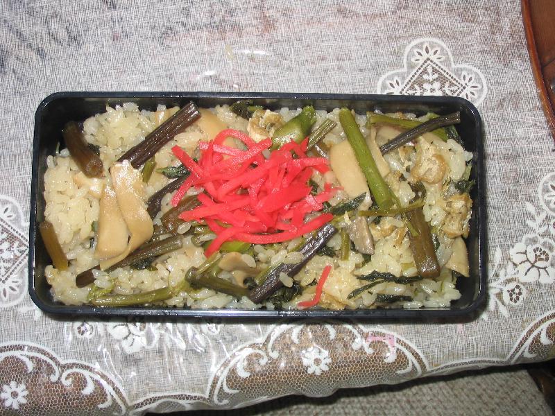 山菜の中でも最もポピュラーなわらびだが、調理法もおひたしに煮物、漬物といろいろですが、煮物なんて酒のつまみにもサイコーですね。先日、おすそ分けしていただいたものを油揚げやキノコとともに炊き込みご飯に…弁当でいただきました。シンプルながら季節が口いっぱいに広がり、初夏を満喫しました。