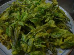 こしあぶらは、上品で山の高貴な王女さまのような、気品があります。そして食べてみて納得、誰もが認める山菜の超優等生です。こしあぶらの食べ方ですが、「てんぷら」に始まり「てんぷら」に終わると言っても過言ではありませんが、先日蔵王で行われた高校の同級会でたんまりとゴチなりました。