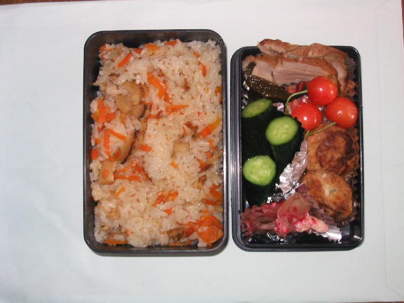 久しぶりの「今日のお弁当」我が家での弁当持ちは3人ですが、いかにある材料で変化と彩りを添えるか、いつもながらカミサンの労苦には頭が下がります。今日のお弁当は「ほたてご飯」、ほたてとにんじんを煮たのをかきまぜたシンプルなものですが、ほたての煮汁の香りが食欲をそそりました。自家製チャーシューもとても柔らかくてイケてました。