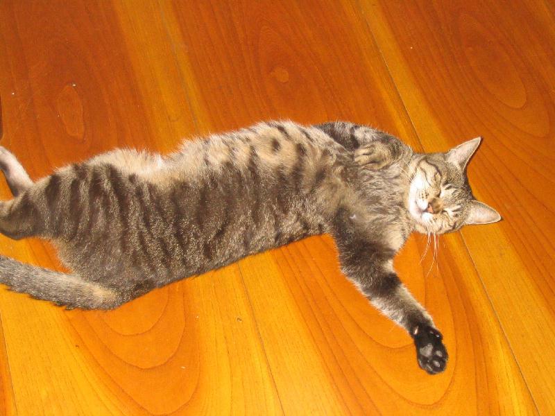 でもネコの本性と言うか本能で、涼しいところを見つけるのは天下一品でね…ここんとこフロアーで寝そべって涼を取っているようです。