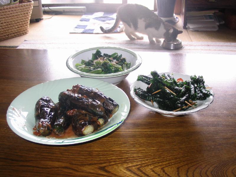 我が家の朝食メニューは超ヘルシー…だいたい夏は朝取り野菜バージョンですが、今朝はつるむらさきのおひたし、なすの味噌炒め、そして昔懐かしいおふくろの味「しそ巻き」がラインナップしました。