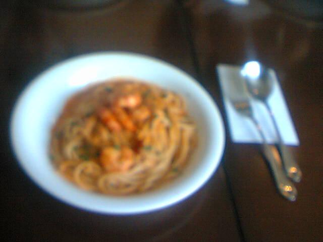 パスタ関係は、余り得手でありませんが、ワタクシは迷わず無難にこの店イチオシの「エビのトマトクリーム」を、連れは「キャベツとアンチョビ」をオーダー。 パスタの茹で具合ですが、オーケー。それに絡むソースと大きなエビのプリップリの食感、とにかく絶品としか言いようがありません♪某有名雑誌のライターをも唸らせたパスタは…間違いない!