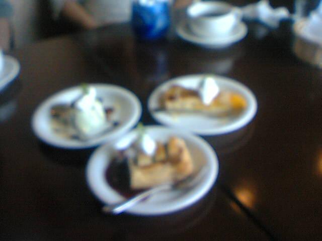 かなり画像がぼやけてますが、昨日のイタめし屋「Bellezza」ランチのデザート。いや3つも食べたわけでなくて、3人が食べる前に集合写真です。アップルパイにピーチタルト、だだちゃ豆のアイスの3品。それぞれ違った味覚でおいしそー。
