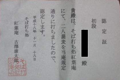 11月といえば、新そばの季節。豊かな大地で育まれた良質のそば粉をたっぷり使い、愛情込められて作られる山形のそば。そんなわけで土曜日、新潟からのお客様をそば打ちに案内してきました、寒河江の造り酒屋古沢酒造さんに併設してある紅葉庵さんです。悪戦苦闘してきましたが、なんとか免状をいただいてきました。「たかがそば打ちされどそば打ち」奥が深いです。