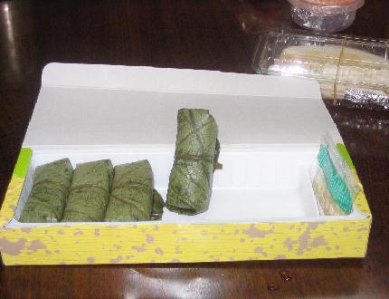 柿の葉には昔から殺菌効果があるといわれており、寿司飯とネタを葉っぱで包んで升に入れ、上から漬物石で重しをして押し寿司にするそうで、酢が利いているのと柿の葉のおかげで夏でも3日ほど日持ちがするそうです。