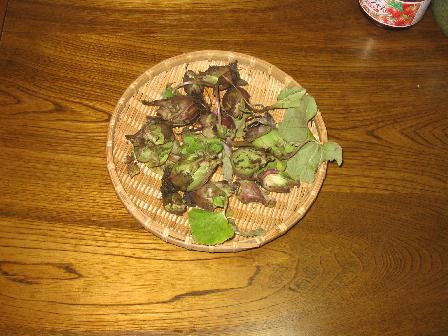 年内に発生するふきのとうを「冬季花蕾」と呼び、初冬のきのこ採りと同時期に採取するそうです。春のふきのとうと違い、フキ本体に一個しか出ないそうで、貴重なふきのとうです。色は、外皮の色は赤紫色状を呈し、表面を剥きますと、通常のふきのとうと変わりないそうです。