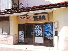 「寒映」という映画館である。小さいころ、怪獣映画、ヒーロー映画にわくわくと胸躍らせたところでもある。時には、写真にもある券売り場でおとり役がばあさんと話してるすきにモグリで入ったり、青春時代まで思い出がいっぱい詰まったところである。ここの映画館は2階席が畳敷きになっていて、よく寝転がりながら見たものである。今も建物は残っており、ここを通るたびいろんな甘酸っぱい思い出がよみがえる。