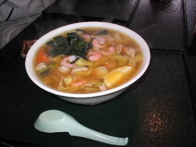 移動途中、千昌夫の生まれ故郷陸前高田市で昼食、ふらっと入ったラーメン屋でたのんだのがこの海鮮ラーメン。たいして期待もしてなかったのだが、見事に期待を裏切ってくれて「まいう〜」。エビやホタテなどの具をあんかけで載せたせいか、スープも冷めずアツアツ状態で、最後まで楽しめました。コーヒー付で800円は安かった。