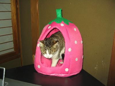 春到来で衣替えシーズンとあって、主人がマイハウスを春らしい装いにいちごハウスを買ってきました。一応春らしいピンクでかわいいんだけど、飼い主の勝手な思い込みはやめて欲しいな。日向ぼっこしているところを、無理やり押し込められてしまいました。