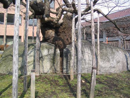 先日岩手県庁に出張で行った折、隣の盛岡地方裁判所内に国の天然記念物に指定されている石割り桜を見学してきました。