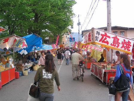 定番の焼きそば・バナナチョコやクレープ、粉もんの広島お好み焼き、大阪焼きから揚げ、ローカルなどんどん焼きETC…新顔としては、シャーピンというおやきに人気が集まってたようです。