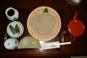 そば粉は地粉と北海道産を使い、石臼で挽いたのをつなぎ1、そば粉10の割合で普通の蕎麦よりはやや細めに仕上げており、細さでは1,2を争うのではないか。そばつゆは多少濃いめ、シャキッとしたそばによくからみ、腰が実にしっかりとした締められた食感は好き好きですが、私なんかはこっち系が好きです。