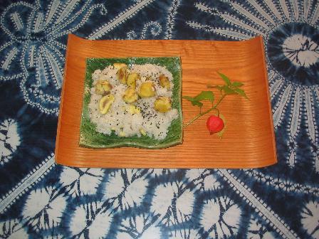 その栗が、早速栗ご飯登場です。ホクホクとした食感に、お代わりしちゃいました。食欲の秋とはいえちょっとヤバイかな。