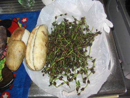 昨日、珍しい山菜「みず」の実をいただきました。山菜「ミズ菜」の先端の葉の部分につく実だそうで、小さな玉を噛むとパチンとはじけて、だんだんと粘りが出てくるという不思議な食べ物です。
