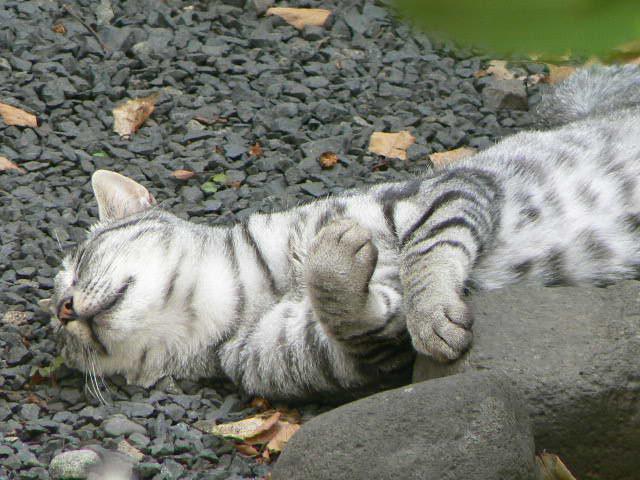 土曜日の昼下がり、近所の庭先でスヤスヤ…気持ちよさそうに寝てますね〜。近くまで寄ってカメラを向けてもこのとおり、爆睡です。
