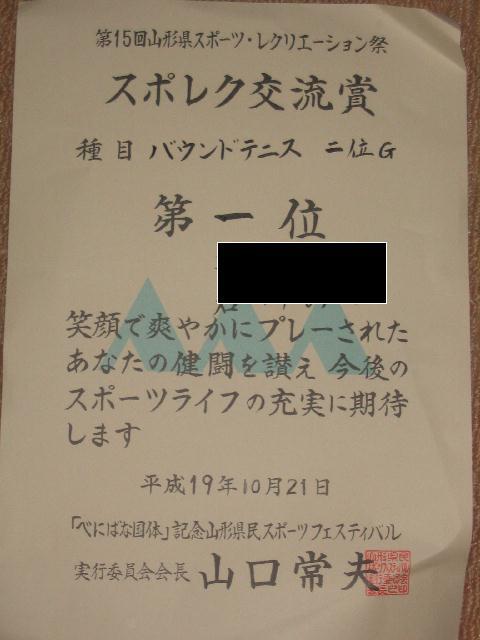 スポーツレクリェーション大会でしたが、親善といってもいざとなるとマジになって、大人気なく優勝しちゃいました。ホント、最近「ヘビの抜け殻」効果で、シンジラレナ〜イことの連続です。このラッキー運、23日のオータムジャンボ抽選日まで持続して欲しいな〜。