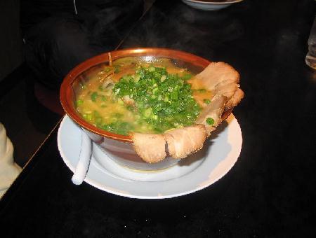 まずスープを一口、透き通ったあっさり味のとんこつで、少しだけ背脂が浮かせてあり素材の甘さが上手く引き出され美味しいスープに仕上がっています。シコシコした麺とシャキっとしたもやしとたっぷりのねぎの食感もグッド、大きめで薄切りながらチャーシューが4枚もはみ出すように載っていて、自分的に花◎合格です〜。