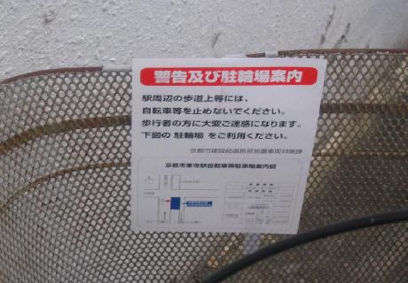 さすが世界の観光地京都、古都の景観を保持するために、道路に駐輪している自転車にボランティアとおぼしきじいさんが容赦なくステッカーを貼っていました。
