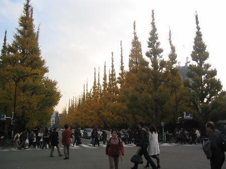 仕方なく予定を変更して、周辺の紅葉散策。神宮外苑のイチョウ並木通りが色づきはじめ、イチョウ祭りも行われ人人人でごった返していました。黄色いじゅうたんが見られるのは来週あたりでしょうか?