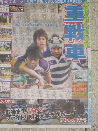 な、なんと「明大スポーツ」編集もプロ真っ青の本格的な新聞です。TVで6大学野球でこの種に新聞が無料配布されてるとことは知ってましたが、さすが伝統の6大学カネかかってます。試合結果は、71失点は明早戦での史上最多失点で明大の負けだったようです。