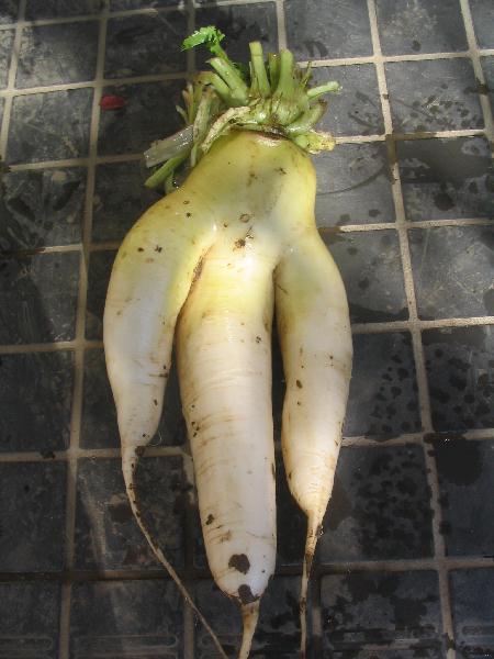 掘り起こした大根ですが、人間と同様個性豊かです。