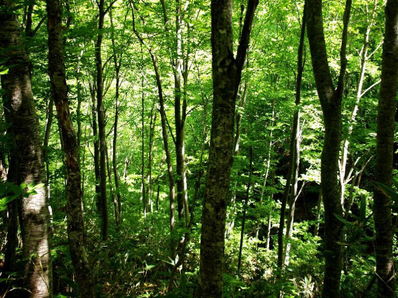 別れて調査を行った。天気にも恵まれ新緑のブナ林は最高