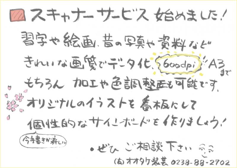 手書きのイラストや筆文字をスキャナーしてデータ化のサービスをはじめました。