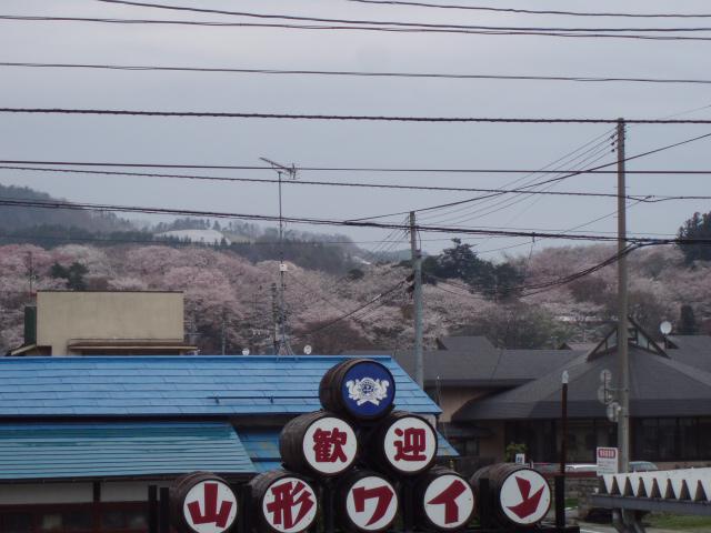 おらいの駐車場から見える烏帽子山の千本桜はちょうど満開です。きれいに見えます(画像)。明日は、その烏帽子山でワイン売りです。天気予報では、明日もけっこう気温上がるみだい(^_^) 花見日和になりそうです。