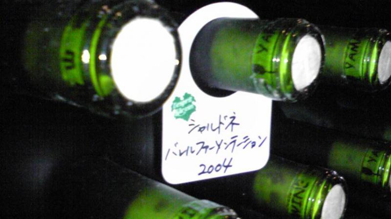 画像はワインセラーに貯蔵している『シャルドネ・バレルファーメンテーション2004』。おらいのワインでは、一番長い名前でもあり、一番値段の高い(¥3,675也)商品だっし。
