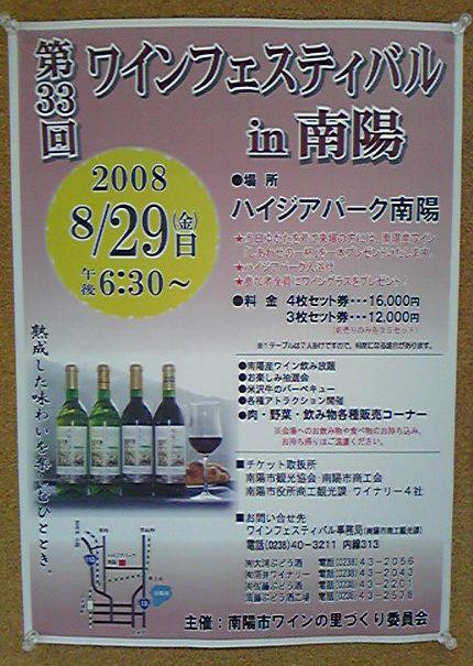 今回もハイジアパーク南陽バーベキューガーデンで、8月29日(金)18時30分より行います。チケットは、4枚セット券が16,000円、3枚セット券が12,000円。数に限りがありますので、お買い求めはお早めにどうぞっし(問い合わせ先 yamagatawine@nifty.com)。