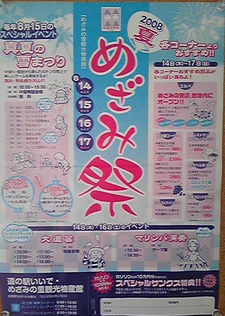 明日、明後日、飯豊町めざみの里観光物産館で、おらいの試飲即売会を行います。限定のアイスキャンベルや、人気1の甘美などをお持ちします。是非ござってみでおごえっし。17日まで、めざみ祭りを開催しているようです(画像)。