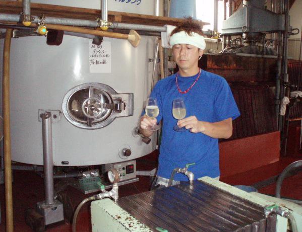 ▼『赤湯ヌーヴォー2008(白)』粗濾過作業
