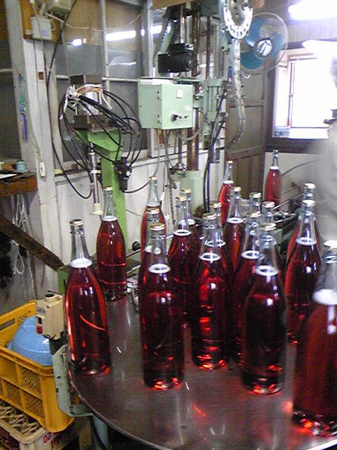 ▼『赤湯ヌーヴォー2008(ロゼ)』一升瓶充填作業