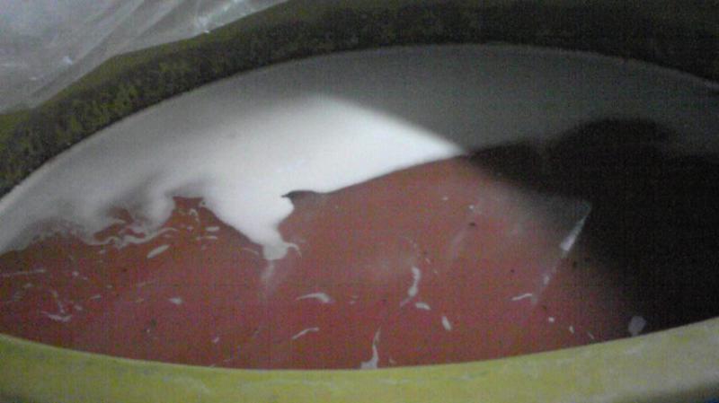 特にクリスマス気分も無いまま、今年中に終わさないといけない仕事が多く、年末の忙しさだけが身に染みます。細かい仕事が多い中、先日今年最後のワイン仕込みを、凍ったキャンベル・アーリー種で行なっているので、その発酵管理も怠らないようにしてます。画像は発酵5日目を迎えた醪です。極甘口に造らんなえがら、そろそろ発酵を止める準備さんなえ。