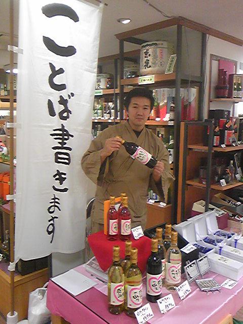 今日は、“ことばのアート”安部春彦氏(米沢在住)と大沼デパート米沢店にて、バレンタイン用のワインを販売しました。お客さんが書いて欲しいメッセージをラベルに書いて、おらいのワインさ貼って売ってます。安部さんが書く独特の文字は、温かみがあるので、お客さんに大変喜んでもらってます。
