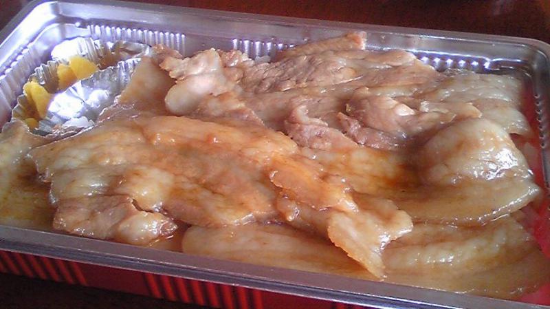 この店の名物は豚丼です(画像は持ち帰り用を買ってきたので弁当になってます)。北海道帯広産の豚肉にこだわっており、甘く程よいしょっぱさのタレを絡めて、ご飯の上にのってます。かなりのボリュームで、腹くっちぇぐなったっけ。