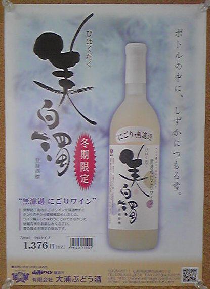 冬限定の濁りワイン『美白濁』、春らしくなっとちょっと売りづらくなっけど、赤湯はまだ冬らしさがあるので、今月いっぱい販売します。あとわずかですので、お早めにm(__)m