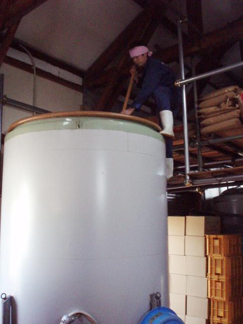 画像は昨年仕込んだシュール・リー製法の辛口白ワインを、櫂棒で攪拌しているところだっし。時々、攪拌して澱を上澄みのワインと触れされ、より旨味(厚味)が出るようにしています。