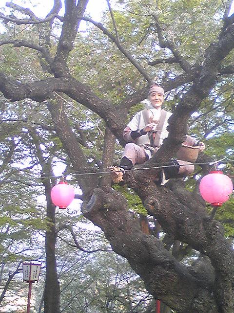 赤湯の烏帽子山公園もほとんど桜が散り、ピンクから緑色になりました。名物の花咲か爺さんもところも、完全に葉桜。