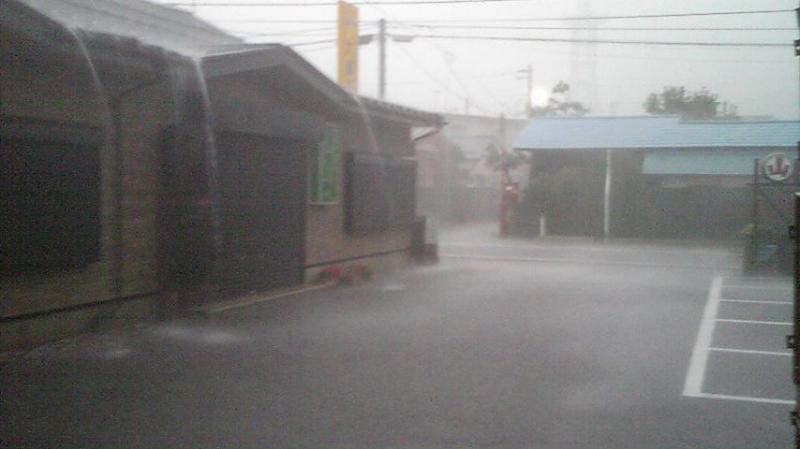 晩かだだがら、ショップの店閉まいしったら、いきなり物凄い雨降ってきてよぉ、雷も凄いっけ。今日の朝刊読んだら、汽車も止まったみたいでした。