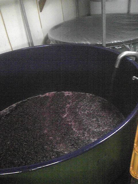 今日は、おらいの人気商品『甘美』用に約4.5トンのベリーAを破砕し、タンクへ入れました。夕方、酒母を添加したので、明日から発酵が始まります。甘口に仕上げるので、発酵初期の段階から気が抜けません。