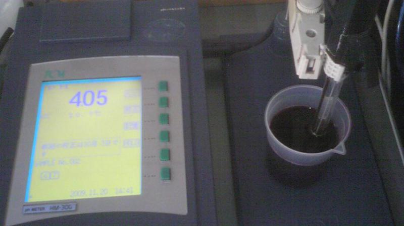 画像は、今タンクで仕込み中のカベルネ・ソーヴィニヨン(赤ワイン)のpHを測っているところだっし。アルコール発酵が終わっと、マロラクティック発酵させるんだげんと、このマロラクティック発酵が始まっと、このpHの値がグングン上がってきます。