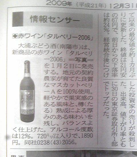 年明け早々に発売する『タルベリー』という、マスカット・ベリーAで造った樽熟成の赤ワインです。