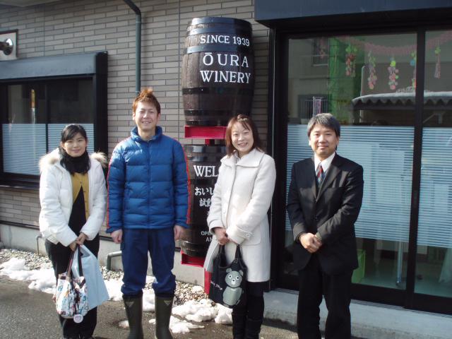 楽天市場で山形県のこだわりの特産品を販売しているまるごと山形さんのスタッフの方々(画像左:店長の妻千絵子さん、右:増田さん、右から2番目鍵谷さん)が今日おらいさござって、取材して行かれました。スタッフの皆さんは取り扱う商品の知識を得るため、本当に勉強熱心で感心させられますm(__)m オラも見習わんなねなぁ、と強く思いました。