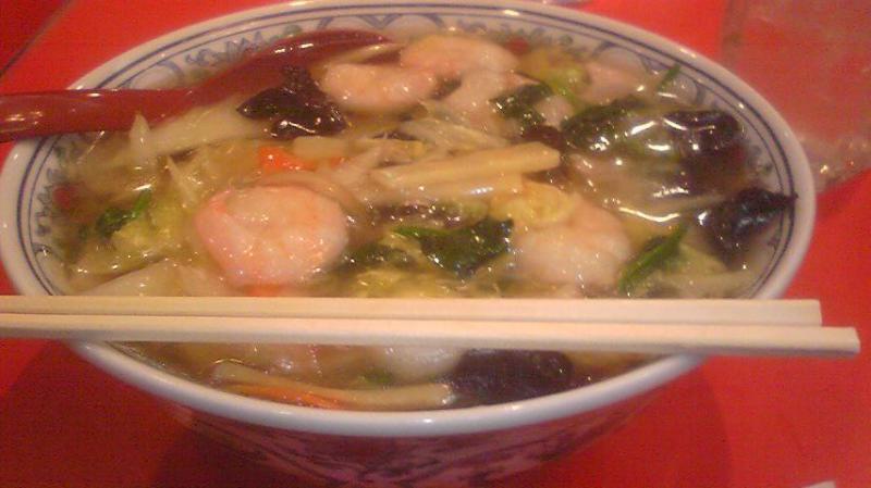 ゆんべなは、えびそばを注文。本当はエビチリも食いっちぇがったげんと、財布を見たら何と2,000円位しかなく、帰りの汽車賃とタクシー代を差し引くと贅沢出来なかったので、さすがに断念。