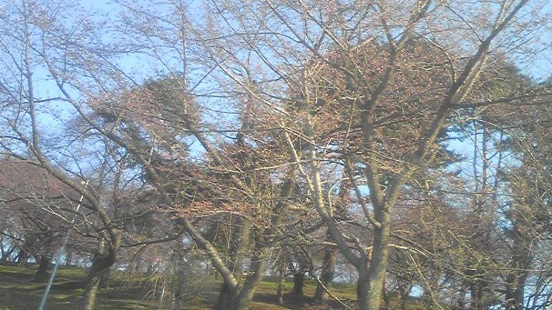 遠くから見ると、ようやく烏帽子山の千本桜も赤っぽく見えてきました。近くで見ると、あっちこっち咲き始めた位。見頃はゴールデンウィークに入ってからになりそうです。去年はかなり早かったので、今頃散ってだっけなぁ。