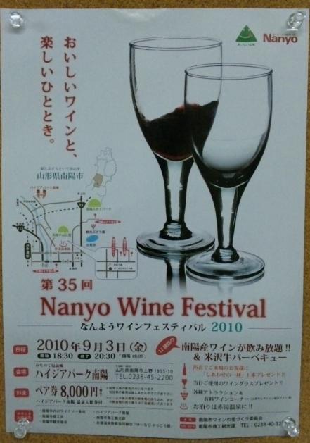 毎年8月の末にしったっけげんと、今年は9月3日ということで9月の第一金曜日になりました。場所はハイジアパーク。18時30分〜20時30分まで。チケットはペア券で8,000円。米沢牛バーベキューを食べながら南陽4社のワインが飲み放題の、人気のイベントだっし。チケットも毎年早目に完売すっから、ご希望の方はお早目にお買い求め下さい。おらいでもチケット販売してます。