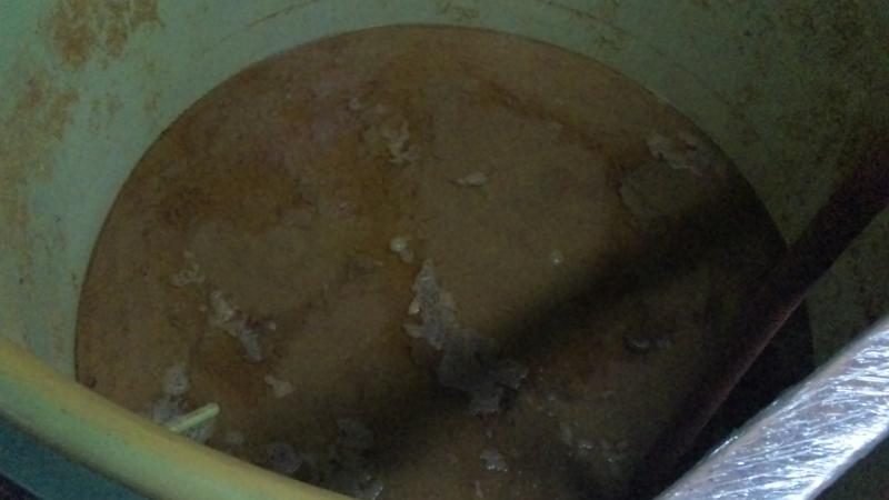 画像は、上澄みを移動した後のタンク下部に残った果汁の澱。けっこうドロっとしてます。