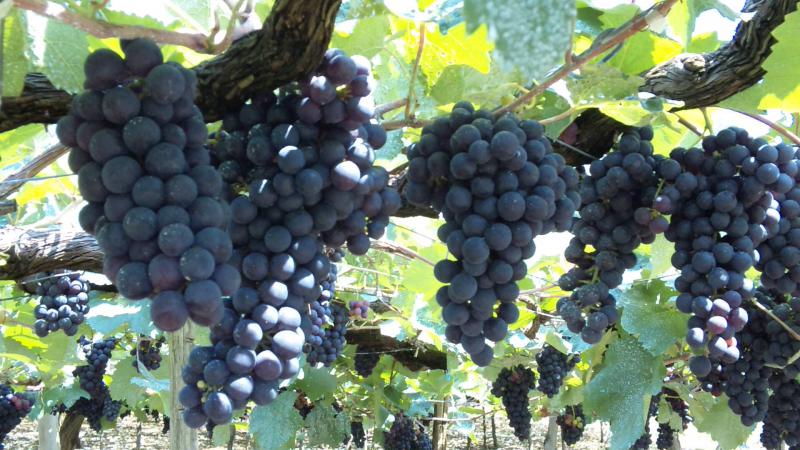 画像は今日現在のブラック・クィーン。トラックでデラの集荷をしている時、通りかかった、おらいの契約農家さんの畑。まだ薄い箇所もあっけど、だいぶ黒味を帯び健全に育っています。この猛暑に負けず、あと1ヶ月ちょっと樹にぶら下がってでもらって、10月の10日あたりに収穫します。