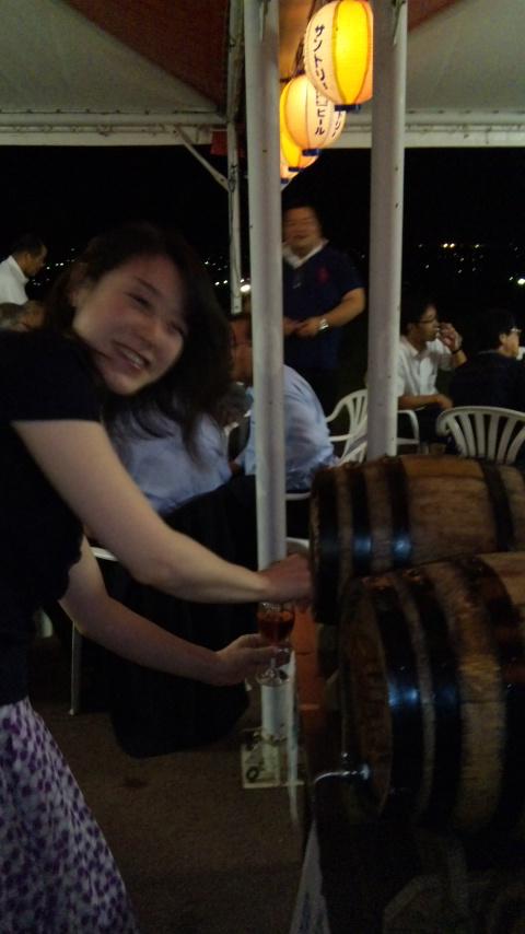 大浦、酒井さん、佐藤さん、須藤さんの赤、白、ロゼ計12種類の樽から好きなワインを選んで、グラスに注いで飲み放題。やっぱり、牛肉と一緒なので赤ワインの樽が一番早くに空っぽに。